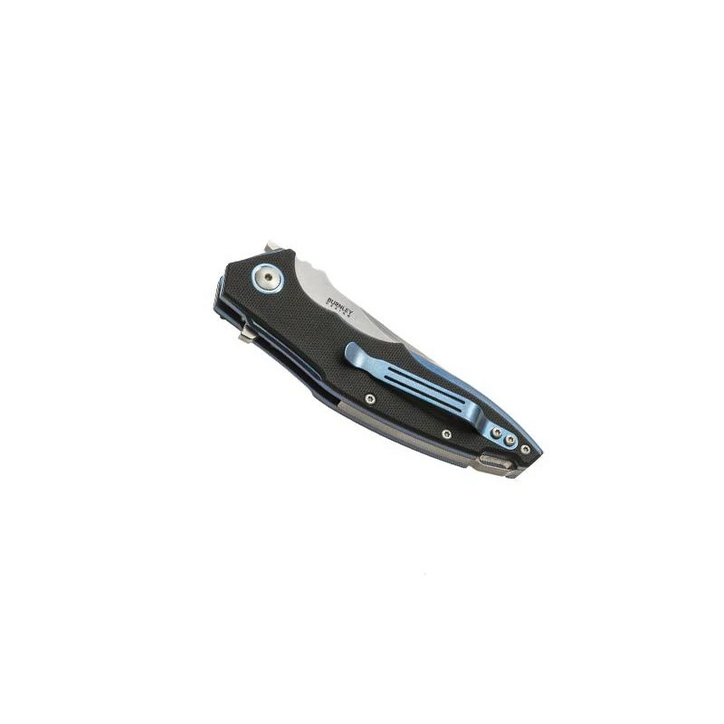 Ce couteau MKM Raut VP01GBBK est le résultat d’une étroite collaboration entre la marque Viper et le designer Lucas Burnley. Un modèle que vous apprécierez pour sa lame “Sheepfoot” de longueur 85mm fabriquée en acier M390 Bohler finition stonewashed avec flipper classique (car il existe aussi en version front flipper, voir référence VP01GFBK). Tranchante et résistante, la lame est décorée discrètement par le logo MKM, elle est personnalisable sur les deux faces. Le manche lui reste fabriqué en titanium 6AL4V bleu avec plaquettes en G10 noir : il est aussi élégant qu’ergonomique (excellente prise en main). Un clip de poche en titanium bleu est également présent au dos, de ce fait, le couteau MKM Raut Viper VP01GBBK se révèle très transportable, d’autant plus qu’il ne mesure que 12cm de long en position fermée. Couteau fabriqué en Italie et livré avec sa pochette en nylon noire MKM.