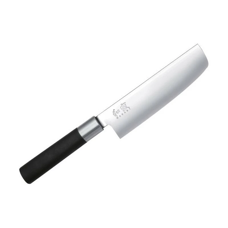 Le couteau à légumes Japonais Nakiri, par Kai, série Wasabi Black, fera le bonheur des passionnés de cuisine souvent amenés à devoir travailler les légumes frais. Il se dote d’un manche noir qui ne manque pas d’élégance, il est conçu et fabriqué en mélangeant de la poudre de bambou (anti-bactérien naturel) à du polypropylène, un matériau plastique. Agréable au toucher ainsi qu’à prendre en main, le manche enclave également complètement la lame, pour une plus grande robustesse ainsi qu’une hygiène irréprochable. Vos légumes n’ont qu’à bien se tenir !
