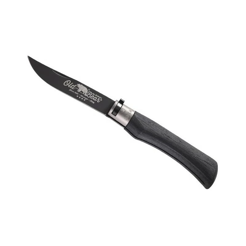 Avec sa taille XL, ce couteau Old Bear Total Black 312.XL est le modèle le plus grand avec une longueur de manche de 13cm. Toutefois, il faut mentionner le fait que la transportabilité reste très bonne, le couteau pliant peut par exemple être assez facilement glissé dans une poche. À noter que le manche est fabriqué en bois d’ayous stratifié noir, la lame en acier 420 est elle aussi noire (revêtement PTFE) avec marquage du logo Old Bear sur la face avant. La face arrière de la lame est d’ailleurs personnalisable par la gravure du texte de votre choix (voir bouton ci-dessous). Pour assurer des manipulations en toute sécurité du couteau Old Bear Total Black 312.XL, l’utilisateur pourra compter sur une virole grise en laiton nickelé située entre la lame et le manche. Utile, elle confère également au couteau de poche Old Bear une allure toujours plus élégante ! Fabrication artisanale Italienne, livré en boîte individuelle, avec certificat de contrôle qualité.
