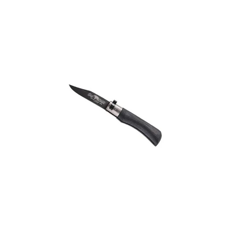 Le plus petit de tous les couteaux Old Bear avec une taille XS ! Il s’agit ici du modèle Total Black 312.XS avec lame noire en acier 420, revêtement PTFE, avec virole de sécurité grise en laiton nickelé. En plus de sécuriser les manipulations du couteau, la virole grise apporte également de l’élégance avec une parfaite complémentarité avec la couleur noire globale. Conçu et fabriqué de façon artisanale, ce couteau Old Bear Total Black virole grise XS est doté d’un manche en bois d’ayous stratifié noir, avec une longueur de seulement 9cm pour la facilité de transport. Un couteau qu’il sera très facile d’emporter n’importe où en le glissant par exemple dans la poche ! Modèle livré en boîte individuelle, avec certificat de contrôle qualité. Existe aussi en version plus grande.
