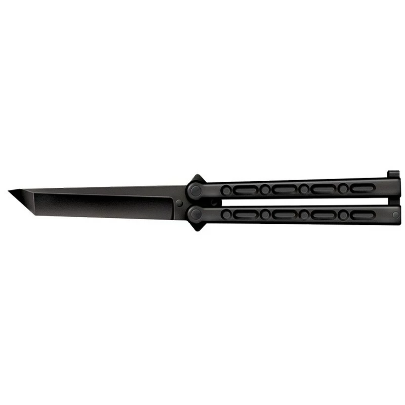 Conçu par la marque Américaine Cold Steel, ce couteau papillon CS92EAB, FGX Balisong, est entièrement fait de Griv-Ex noir. Un moulage par injection qui permet de tirer les prix vers le bas, tout en assurant résistance et légèreté (mélange de fibre de verre et polymère). De forme tanto, la lame de 127mm de longueur présente une pointe renforcée ultra-performante, capable de perforer avec puissance ! Le manche noir de 153mm de long vous apportera du confort lors de chaque utilisation, il faut dire qu’il est agréable de le tenir en main. Le poids du couteau papillon FGX Balisong Cold Steel CS92EAB ainsi que le loquet de retenue vous permettront de le faire basculer pendant des heures avec plaisir ! À ce prix là, il sera très difficile de trouver mieux ailleurs, d’autant plus que Cold Steel est une marque fiable, qui a fait ses preuves. Ce modèle CS92EAB est muni d’une lame lisse, mais vous trouverez sur le site, dans le même style, un balisong Cold Steel avec une lame noire lisse/dentée (voir accessoires en bas de page).