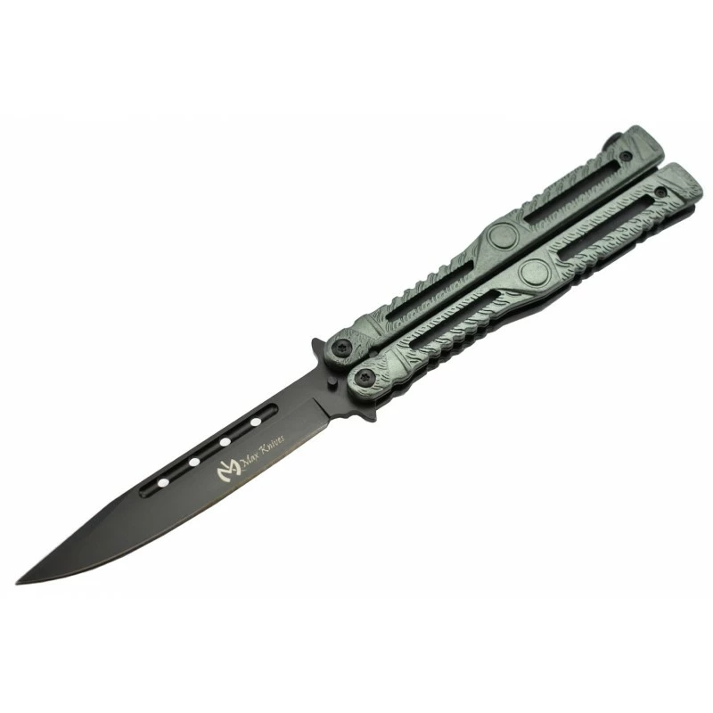 Le Max Knives P47 est un couteau papillon proposé à un prix de vente particulièrement attractif. Sa particularité physique, c’est son manche construit en aluminium anodisé vert, il est orné de petits motifs et ajouré à de multiples reprises pour un style attrayant. Le coloris vert anodisé fait la différence en terme d’esthétisme, la poignée est agréable à manipuler et mesure 127mm de long pour que le transport ne soit jamais un problème.