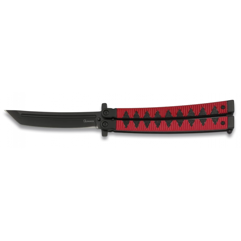 Muni de la référence 36248, ce couteau papillon va plaire à tous ceux qui aiment les balisong rouges et noirs. Ce modèle NINJA doit son nom en raison de son manche en aluminium noir et rouge légèrement incurvé pour une meilleure prise en main. Lorsque les deux parties du manche sont réunies, on peut apercevoir des motifs losanges noirs apportant une forte dose d’élégance. Côté lame, elle reste fabriquée en acier inoxydable et mesure toujours 103mm de long, elle est aussi légèrement courbée avec une forme proche de celle du sabre. Elle est également décorée par le logo du fabricant Espagnol Albainox et comporte une finition noire en parfaite harmonie avec le manche. Ce couteau papillon Ninja Rouge Albainox est vendu avec sa boîte colorée.
