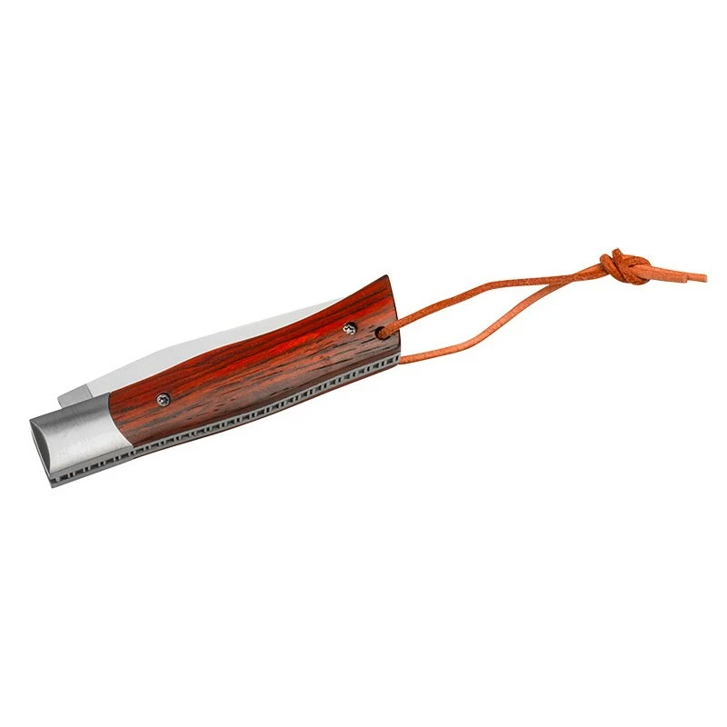 Si vous appréciez le style des couteaux régionaux, cette réalisation de Böker Magnum devrait vous plaire. Il s’agit du modèle Parzival Palisander 01MB007 dont la construction est similaire au populaire couteau Alpin. Ce couteau pliant Slip Joint se dote d’un manche en rosewood ou encore bois de rose ce qui lui confère énormément de charme. La poignée est munie d’une mitre en acier inoxydable, au bout, elle intègre aussi une lanière en cuir vous permettant de l’accrocher avec aisance. Le Böker Magnum Parzival Palisander est muni d’une lame de 7cm de longueur fabriquée en acier inoxydable 7Cr17MoV. Sans mécanisme de verrouillage, la lame peut être déployée grâce à l’ongle (ouverture nail nick), elle est personnalisable par gravure et se voit décorée par le logo Böker Magnum. Existe aussi en version manche bois olivier.