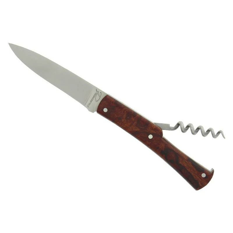 Plein de charme, le couteau Perceval le Français Vintage est fabriqué en France à Thiers, il est ici doté d’un manche en loupe de bois de fer au veinage bien marqué. La belle poignée comprend le tire-bouchons sommelier en bout, vous permettant d’ouvrir avec élégance les meilleures bouteilles.