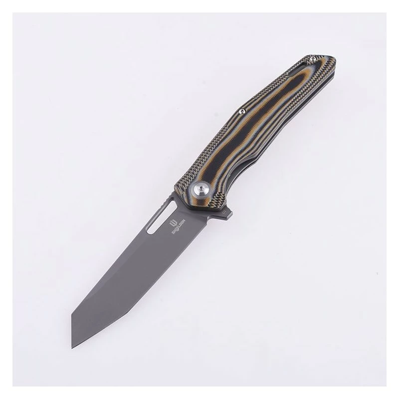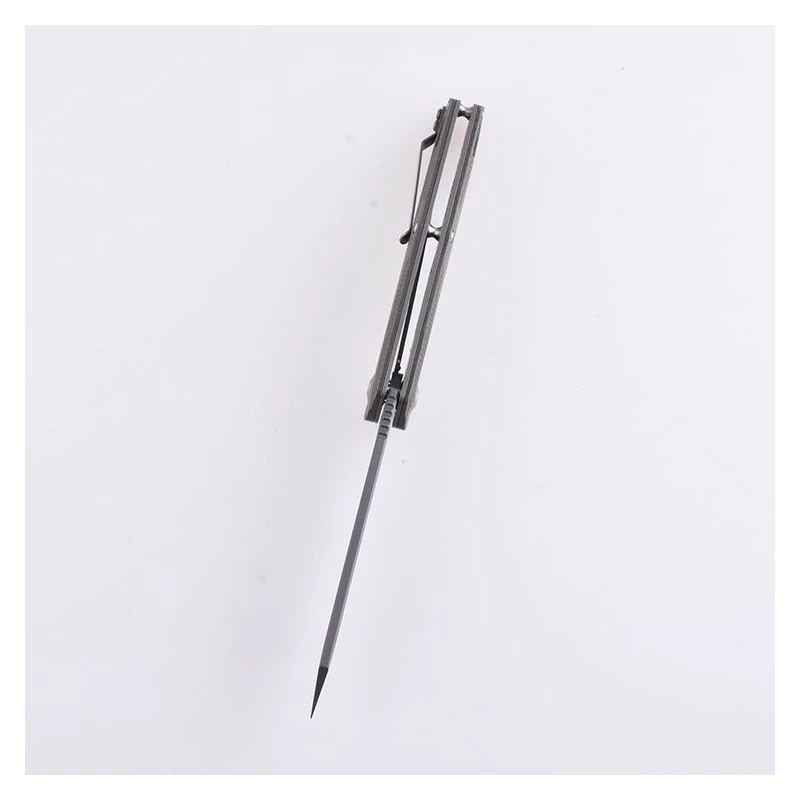Il est doté d’une lame Tanto de 97mm en acier D2 avec revêtement en titane gris. Son tranchant lisse sera votre plus grand allié lors de vos séances de découpages. Résultat: des coupes fines et précises sans grande dépense d’énergie. Un système flipper pour l’ouverture et Liner Lock pour le verrouillage vous assurent un maniement facile et en toute sécurité de la lame.