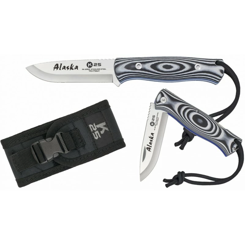 Le couteau pliant K25 Alaska Bushcraft/Survival est un outil indispensable pour les aventuriers et les amateurs de plein air. Avec une longueur totale de 20,30 cm, ce couteau est compact et facilement transportable dans son étui en nylon noir.