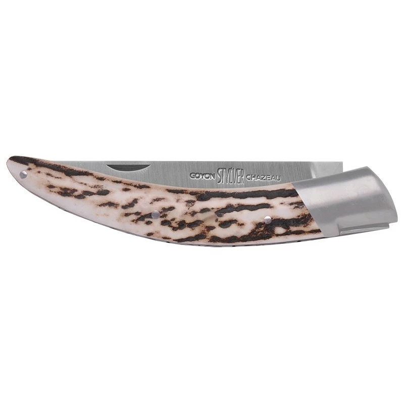 Le couteau fermant Stylver est un couteau inspiré par les lignes des couteaux méditerranéens, conçu pour offrir une ergonomie parfaite et une préhension incomparable. Le manche mitré est fait de bois de cerf, offrant un look unique et élégant.
