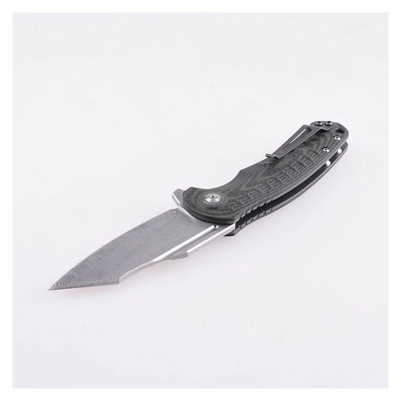 Le manche vert en G10 riche en carbone est léger et solide, en plus d’être très agréable à l’oeil. Un clip de transport est intégré au dos de celui-ci et facilite ainsi son transport. Ou vous pouvez aussi utiliser l’étui fourni par la marque.