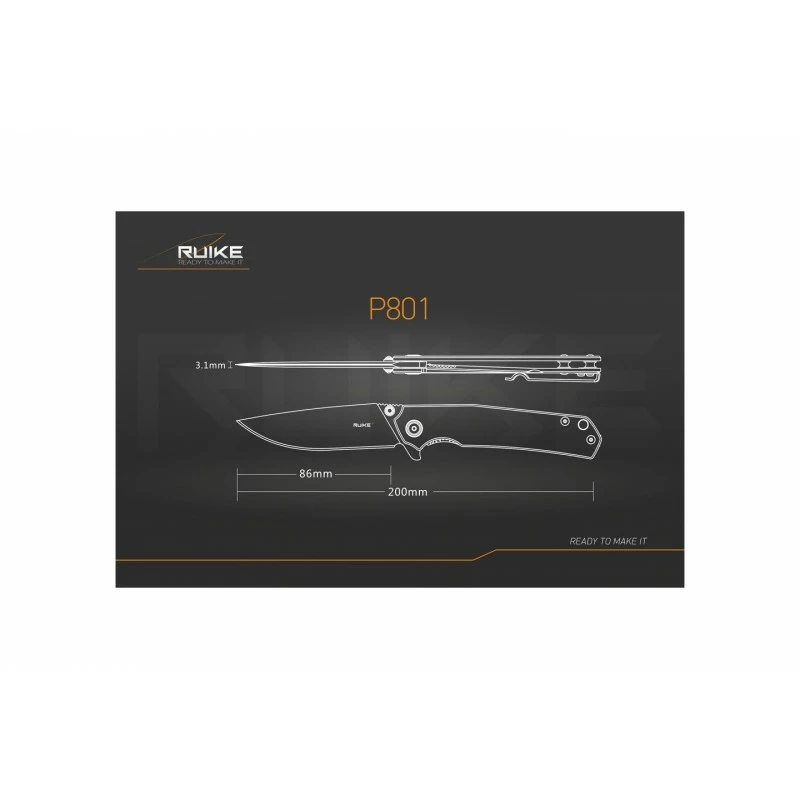 Le Ruike P801SF est un couteau EDC qui est fabriqué presque de façon intégrale en acier inoxydable, avec des nuances bleues pour la touche d’élégance, de style. Sa lame de 86mm est fabriquée en acier inoxydable Sandvik 14C28N (dureté 58-60HRC), avec ouverture par flipper et thumb stud bleu. De qualité, l’acier utilisé garantit un excellent tranchant, ainsi qu’une résistance à la corrosion optimale. Présence de l’inscription Ruike afin de faire plaisir aux fans, et possibilité de personnalisation via le bouton “Ajouter une gravure“.