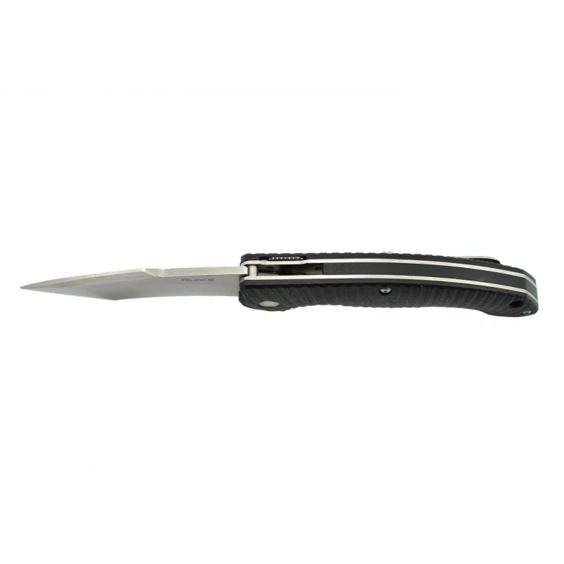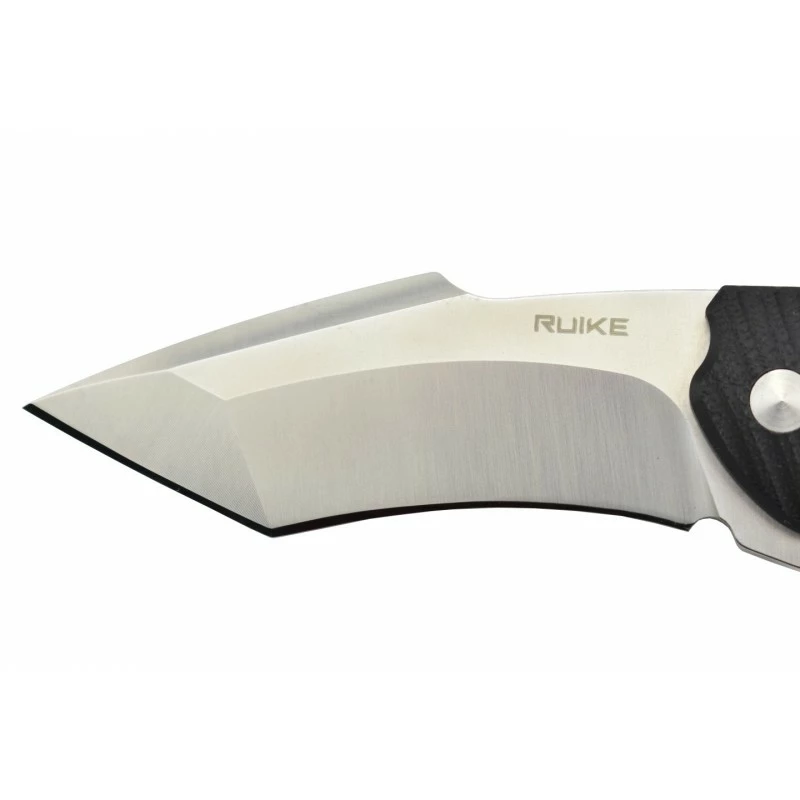 Le couteau Ruike P851-B n’est autre que la version tactique du modèle P852. Il est de ce fait idéal pour les applications tactiques, mais aussi pour l’usage extérieur. Le Ruike P851-B possède une lame de 89mm de longueur, en acier inoxydable 14C28N à la dureté d’environ 58-60HRC. Une lame à la finition brossée, avec traitement cryogénique, qui convient parfaitement pour les applications professionnelles exigeantes. De forme spéciale afin de pouvoir trancher, mais aussi percer facilement, la lame est sublimée par le logo de la marque Ruike. Comme d’habitude il est possible de la graver par une inscription au choix.