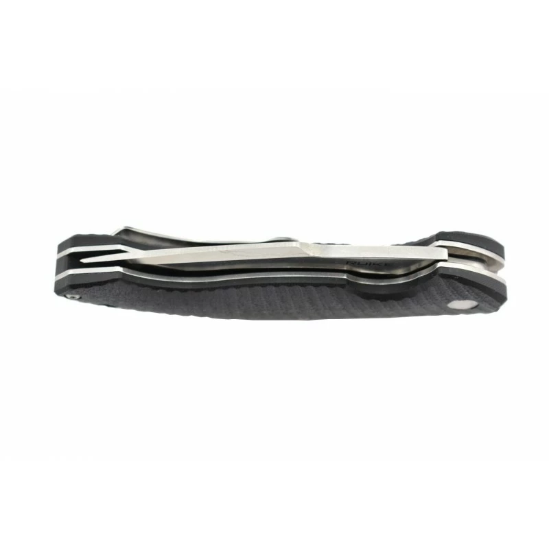 La lame du couteau pliant Ruike P851-B s’ouvre manuellement grâce au flipper, et se verrouille par l’intermédiaire du liner lock, avec système de sécurité Thumb Up empêchant la fermeture accidentelle en utilisation. Parlons peu, parlons bien du manche qui est lui fabriqué en G10 noir, avec platines en acier inoxydable 420. Un manche qui s’avère être ergonomique, et surtout très robuste, résistant. Longueur de la poignée : 117mm, clip de poche au dos afin de permettre à l’utilisateur de se déplacer aisément, et ce, jamais sans son couteau Ruike ! Avec le 851-B, vous serez toujours capable de gérer les situations difficiles !
