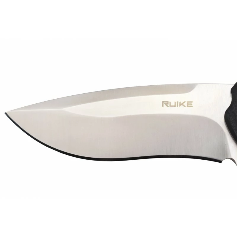 Le Ruike P852-B est un couteau de poche pliant possédant une lame drop point, à la finition satinée, fabriquée en acier inoxydable Sandvik 14C28N, renforcée par le biais d’un traitement cryogénique permettant d’obtenir une dureté de 58-60HRC. Mesurant 89mm de longueur, la lame tranchante est sublimée par le marquage du logo Ruike, il est possible de venir y ajouter la gravure du texte de son choix (option facultative en supplément).