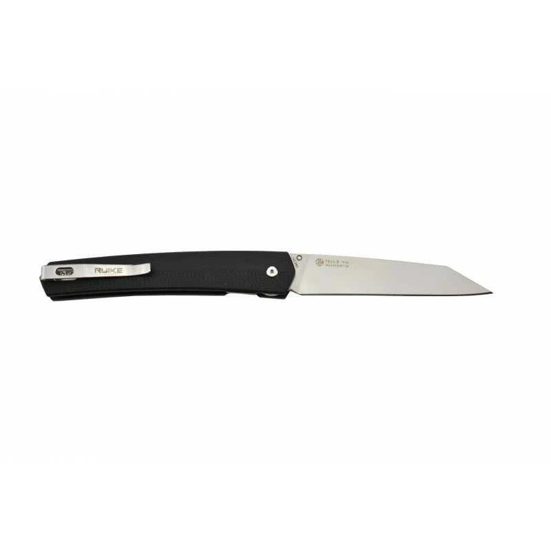 Le couteau pliant Ruike P865-B se verrouille de la façon la plus simple qu’il soit, grâce au système de verrouillage liner lock. Le manche en G10 est de couleur noire pour un style simple et élégant. Comportant un clip-ceinture au dos pour que l’utilisateur puisse transporter avec aisance son couteau Ruike P865-B, le manche dispose d’une texture antidérapante pour une ergonomie à son apogée. Cerise sur le gâteau, cet EDC est léger avec un poids de seulement 70 grammes. Pays de fabrication : Chine.