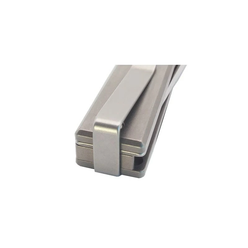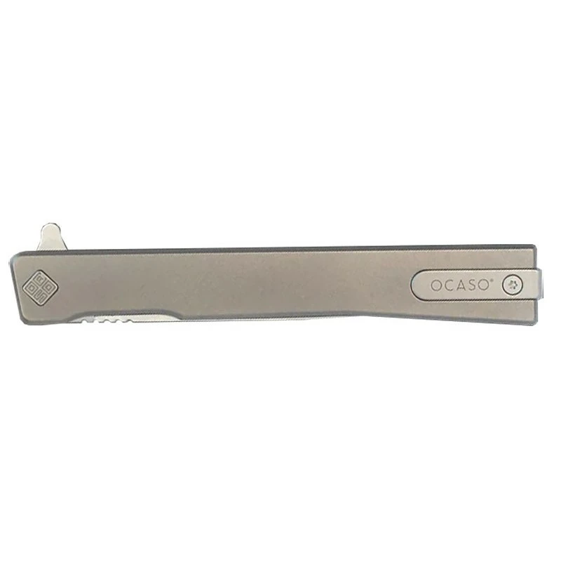 Le manche en titane de couleur beige ajoute une touche d’élégance à ce couteau. Sa finition soignée et sa texture agréable garantissent une prise en main confortable et sûre. De plus, le clip ambidextre permet un transport facile et pratique, que vous soyez droitier ou gaucher.