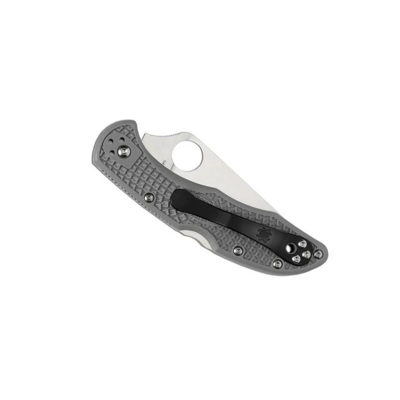 Voici le très célèbre couteau Spyderco Delica 4 dans sa version grise. Portant la référence C11FPGY, il possède un manche de couleur gris conçu en nylon/fibre de verre, un matériau qui brille par son élégance et sa robustesse à toute épreuve. Assurant une excellente prise en main, le manche gris permet également un transport toujours très facile et sans encombre : il est à la fois compact (longueur 11cm) et léger (64g). En plus, un clip est également présent au dos de la poignée : il permet de toujours avoir son couteau Spyderco Delica 4 C11FPGY près de soi lors des déplacements et mouvements. Comme pour tous les modèles Delica 4, ce couteau pliant Spyderco est également doté d’une lame plate et lisse à cran conçue en acier VG-10, un acier qui assure une excellente longévité de part son excellente résistance à la corrosion. La lame s’ouvre facilement et de façon sécurisée grâce au système de verrouillage back lock.