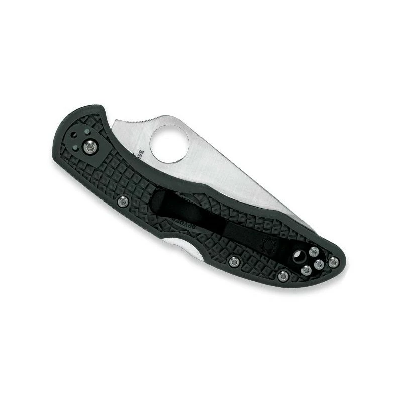 Avec 3% de carbone, l’acier ZDP-189 est très prometteur, et il a justement servi pour la fabrication de la lame de ce couteau Spyderco Delica 4 C11PGRE. Rappelons que cet acier a une excellente duretĂ© (environ 64HRC), offrant ainsi Ă la lame de 73mm robustesse et efficacitĂ© au quotidien. Une lame Ă profil plat, au tranchant lisse, qui est comme toujours chez Spyderco ajourĂ©e d’un large trou de forme ronde, ainsi que par le logo du fabricant AmĂ©ricain. PossibilitĂ© de graver la lame par un texte au choix, en cliquant sur le bouton ajouter une gravure ci-dessous (option facultative en supplĂ©ment).