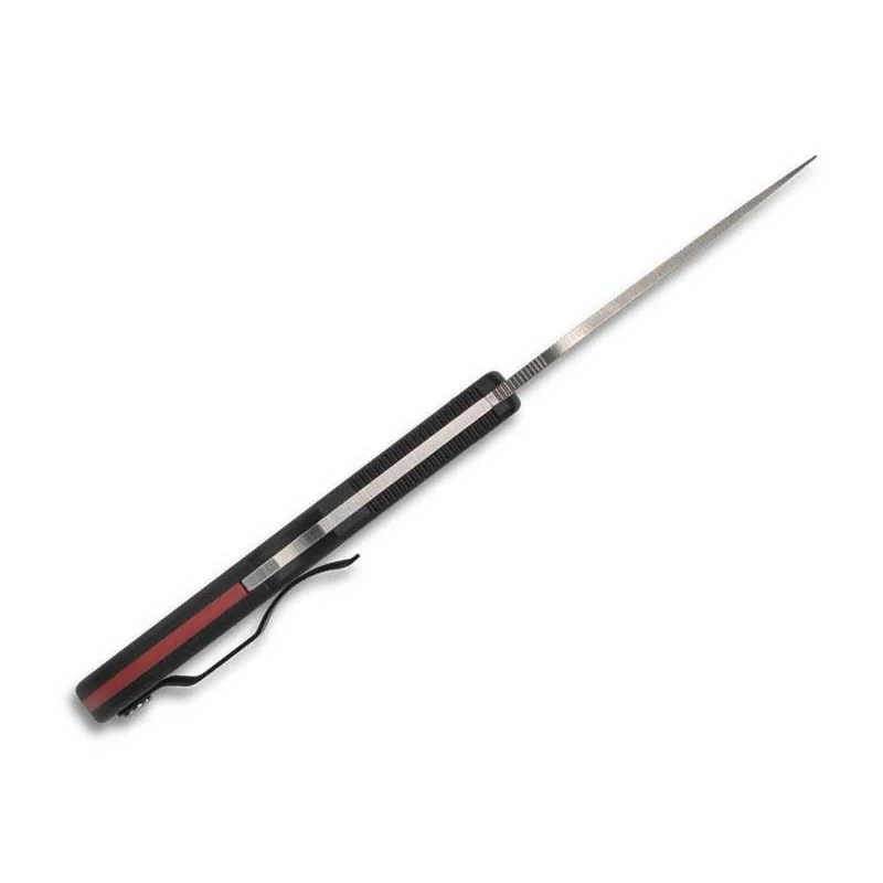 Cette version spéciale du Spyderco Endela 4 s’intitule “Thin Red Line” en raison de son entretoise rouge, contrastant à merveille avec la couleur noire du manche en FRN. Cette “ligne colorée” a une symbolique, celle de rendre hommage aux pompiers et combattants de feu qui servent avec honneur leur pays. Nous vous rappelons que le manche moulé par injection est texturé de sorte à ce que la poignée ne vous échappe pas entre les doigts. Le clip de transport au dos assure de l’avoir sous la main à chaque instant.
