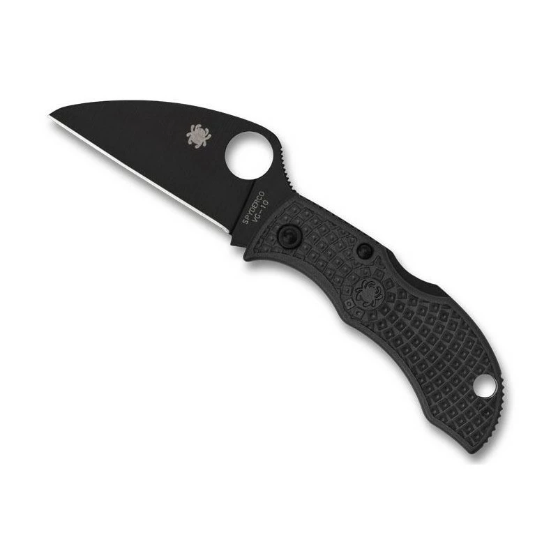 Ce Spyderco Manbug Wharncliffe MBKWPBK se démarque par son apparence entièrement noire. Extrêmement compact et léger, il s’emporte partout avec une facilité déconcertante grâce à son manche de 65mm en FRN noir (nylon/fibre de verre). Texturé pour une prise en main toujours plus confortable, le manche est marqué au niveau du centre par l’emblème Spyderco, il comprend également un trou pour cordon ou encore passe-lacet en bout.