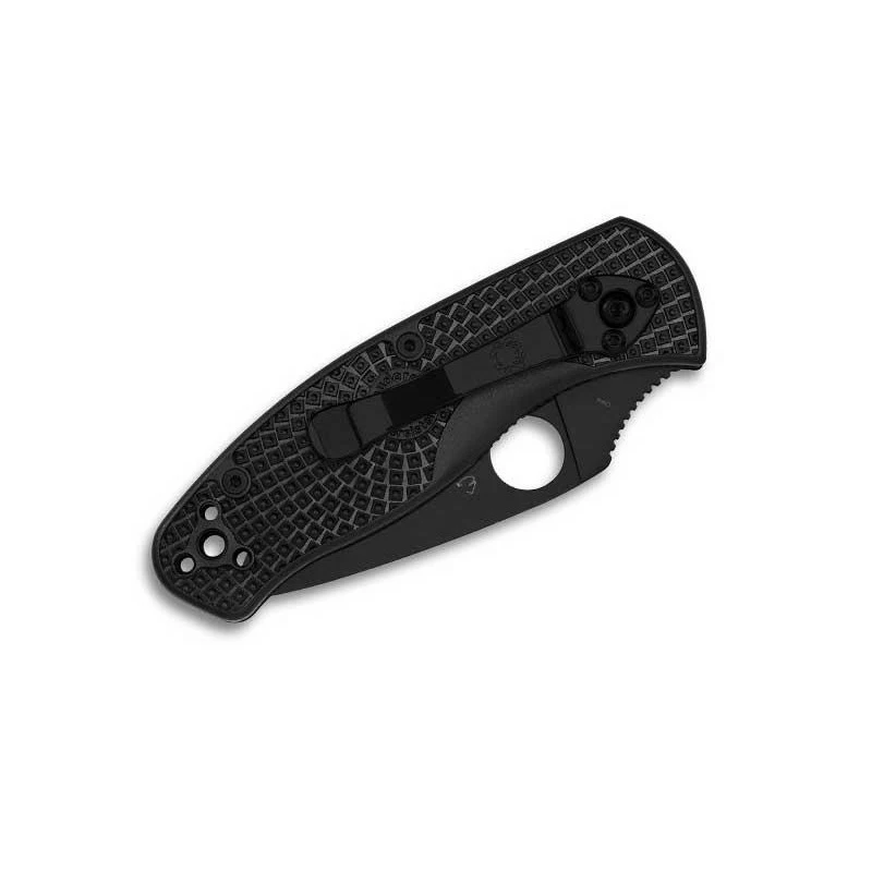 En parfaite harmonie avec le style de la lame, le manche est quand à lui confectionné en FRN noir, du nylon renforcé par de la fibre de verre, gage de solidité et de légèreté au quotidien. Les nombreuses textures de la poignée améliorent le grip, autrement dit la prise en main. Mesurant 105mm de long en position repliée, le couteau Spyderco Persistence Black mixte C136PSBBK est simple à emporter, une sensation renforcée par la présence d’un clip à quatre positions au dos. Également disponible en version lame lisse.