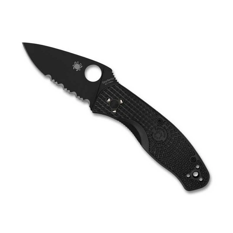 Cette version mixte du Spyderco Persistence All Black offre davantage de polyvalence du fait de sa lame intégrant à la fois un bord lisse et cranté. Revêtue de noir, elle est toujours fabriquée en acier 8Cr13MoV et se verrouille efficacement via le liner lock, pour des utilisations sûres et fiables à chaque instant. D’une longueur approchant les 7cm, la lame est Spyderco oblige, généreusement ajourée et enrichie du motif de la marque.