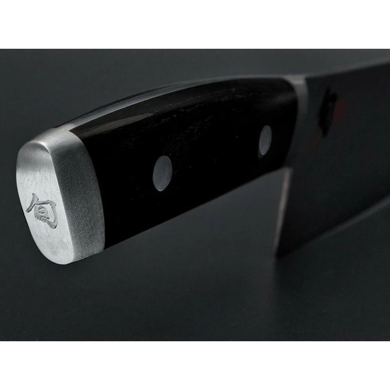 Parfaitement adapté pour la découpe de fruits et légumes, ce couteau universel Kai Shun Kaji se dote d’un joli manche fabriqué en lamelles de bois pacca compressé. Un matériau noble qui confère au manche une élégance incontestable, ainsi qu’une parfaite solidité pour des maniements toujours très confortables. Et si le manche est tant raffiné, c’est également grâce aux rivets ainsi que la mitre marquée par la signature Kaji faisant référence aux forgerons de Seki au Japon.