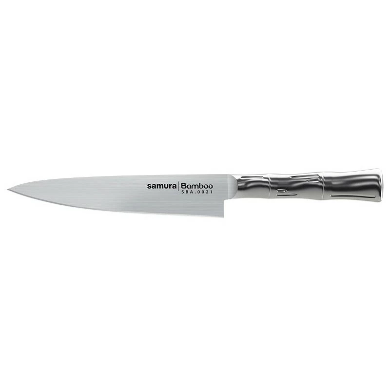 Ce couteau utilitaire d’inspiration japonaise est issu de la série Damascus de chez Samura. Propice à la découpe de nombreux aliments, notamment des fruits et légumes, il bénéficie d’une lame d’une longueur de 12.5 cm constituée de 67 couches d’acier damas. Ce matériau reconnaissable au premier coup d’oeil de part son apparence visuelle unique offre des garanties de fiabilité ainsi que de dureté incomparables. Son excellent tranchant contribue à la qualité des découpes, vous permettant de trancher vos aliments aussi finement que vous le désirez. Pour la manipuler avec aisance, Samura lui a confectionné un manche noir en G10, une résine époxy à base de verre ultra robuste et délicate au toucher qui confère une très bonne prise en main. Ce couteau de cuisine est un accessoire de grande qualité qui vous fera gagner du temps et en précision lors de vos préparations. Le couteau universel Damascus Samura n’est pas compatible lave-vaisselle.