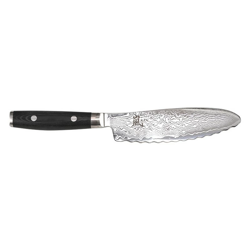 Ce couteau Panini RAN est une création de la marque Japonaise Yaxell, une pointure dans le milieu de la coutellerie. Ce modèle Y36026 est un must-have pour découper le pain et les gâteaux, avec lui, plus besoin de forcer, les découpes seront simples et efficaces. Tout cela grâce à une lame damassée 69 couches comprenant un noyau en VG-10 très tranchant et robuste. Les 68 couches restantes en acier inox à haute teneur en carbone sont réparties de part et d’autre de l’acier VG-10 central. La lame est dentée, décorée avec goût, elle mesure précisément 15cm de long. Le traitement thermique de cette dernière procure une forte dureté de 61HRC. Boulangers, boulangères, procurez-vous l’excellence avec ce couteau Japonais Yaxell Panini RAN dont le manche est conçu en micarta robuste avec une fixation par deux rivets en acier inox. Un couteau à pain au design raffiné et à l’ergonomie soignée, parfait pour celles et ceux qui apprécient les couteaux Japonais.