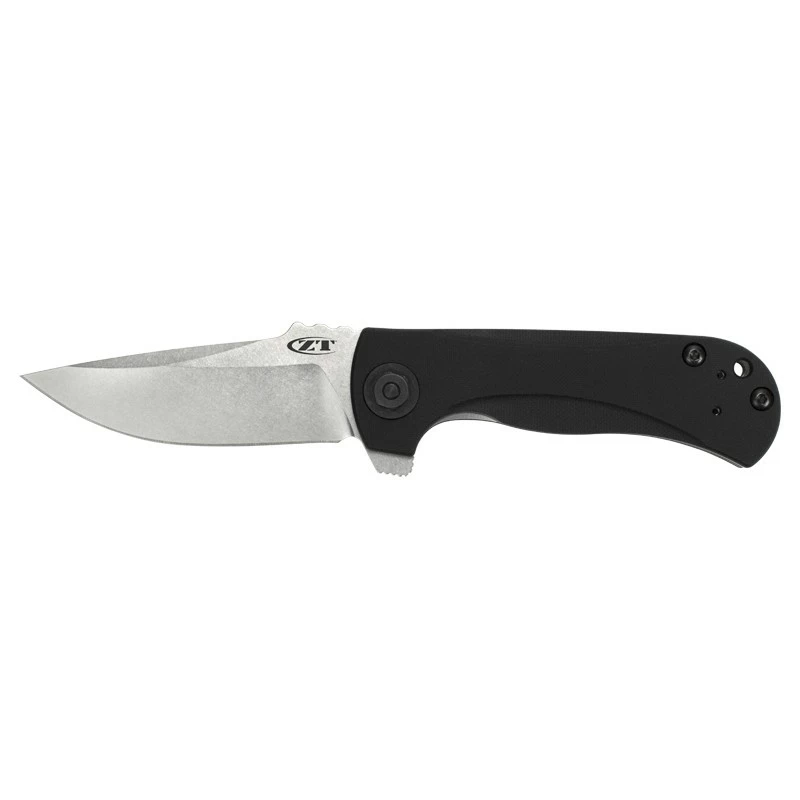 Le modèle ZT 0909 est le fruit d’une collaboration étroite entre la coutellerie Zero Tolerance et Les George. Ce couteau pliant possède notamment une puissante lame fabriquée en acier S35VN avec finition stonewashed ainsi qu’un manche en G10 noir avec doublures extra-épaisses. À noter que l’acier de la lame (S35VN) assure à l’utilisateur un tranchant incomparable ainsi qu’une fiabilité à toute épreuve. Le manche du couteau Zero Tolerance 0909 a lui été conçu de manière à ce que la prise en main soit sûre. Il est à la fois solide, léger et résistant aux changement de températures. Sachez également que ce modèle possède un clip de poche marqué par le logo ZT en référence évidente à Zero Tolerance : il permet de pouvoir transporter le couteau avec plus de facilité au quotidien.