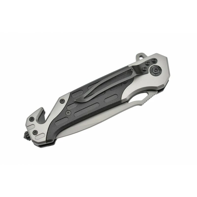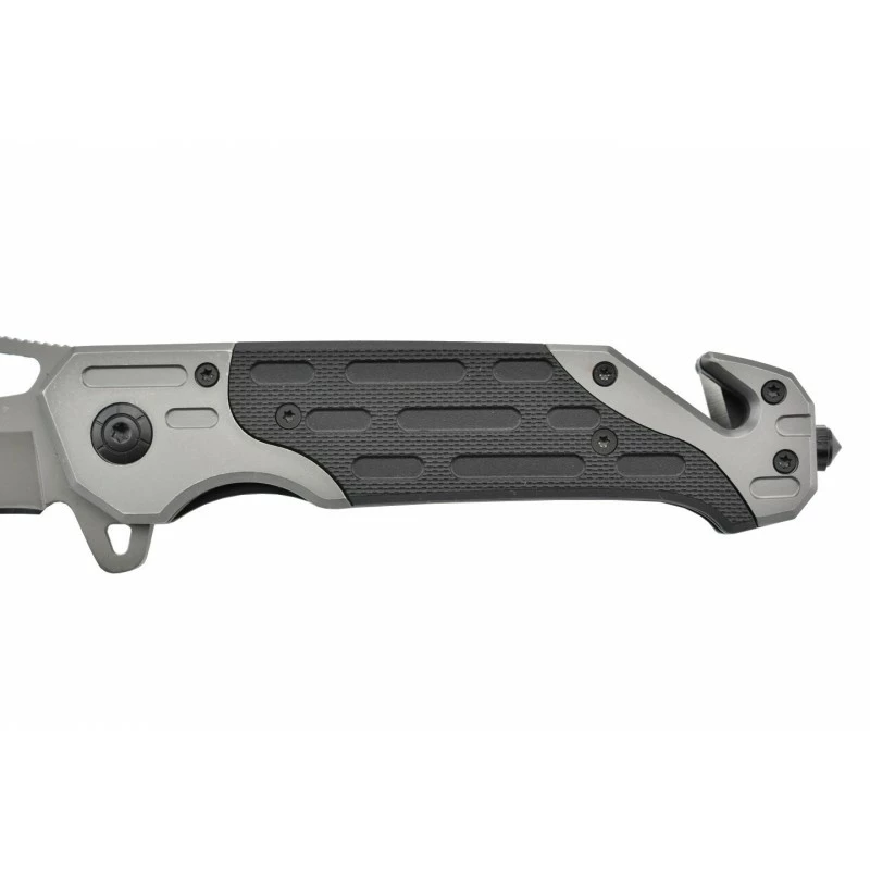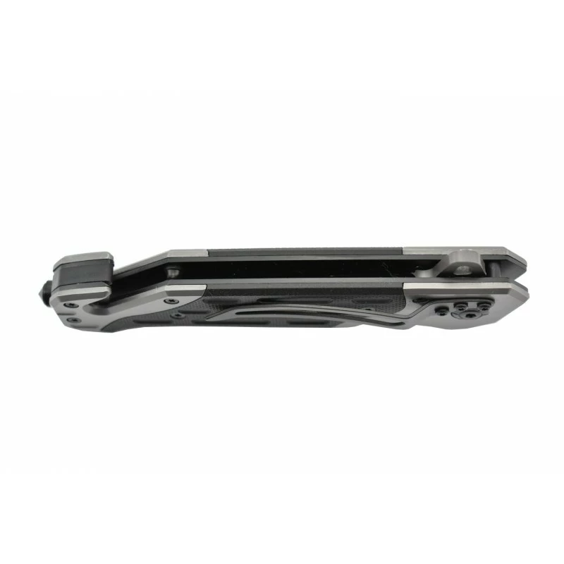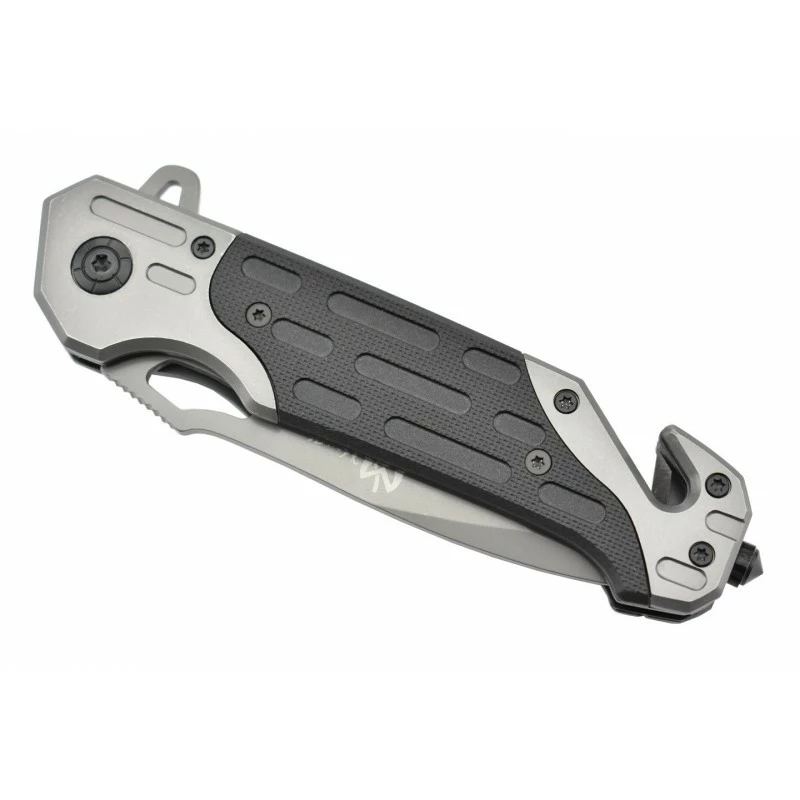 Le couteau Max Knives MK145 dispose aussi d’un manche en aluminium dont la forme garantit énormément de confort au moment de la prise en main. Qui plus est, la poignée fait aussi office de brise-vitre et de coupe-ceinture, un couteau taillé pour l’urgence ! On notera la présence d’un roulement à billes, le mécanisme de verrouillage est lui de type liner lock. La longueur totale du Max Knives MK145 est de 226mm.
