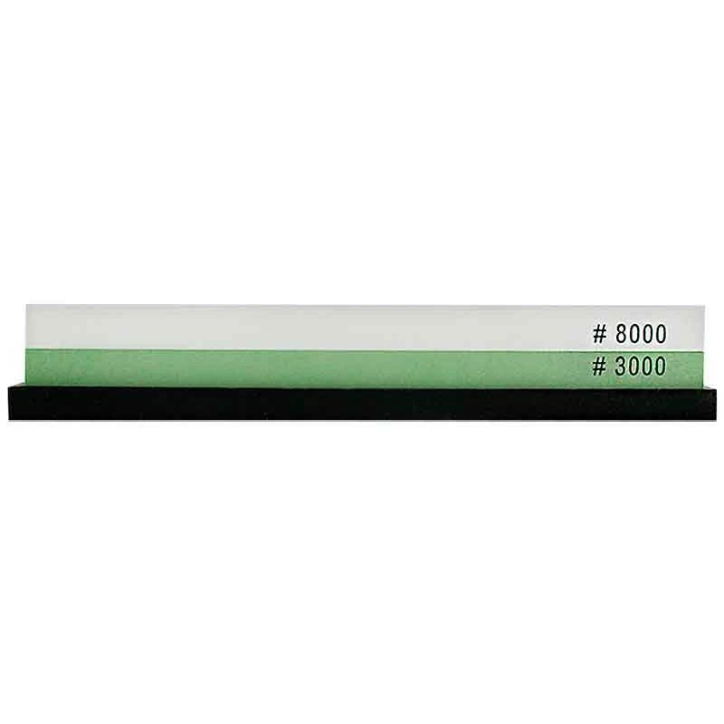 Révélez le tranchant de vos couteaux de cuisine Japonais, mais aussi occidentaux grâce à cette pierre à aiguiser Wusaki (WUNDS2). Double face, elle se dote d’une face à grains fins (3000) ainsi que très fins (8000). La première face, de couleur blanche, s’avère être très efficace pour obtenir un rendu rasoir sur les couteaux de cuisine standards, d’une dureté d’environ 60HRC. La seconde face, verte, est parfaite pour le travail de finition, ou l’aiguisage de précision si vous préférez. Mieux vaut l’utiliser sur les couteaux munis d’une dureté supérieure à 60HRC. Le système de couleurs permet une identification plus simple. Le socle en silicone noir apporte de la stabilité, de la sécurité lors de tous vos aiguisages.