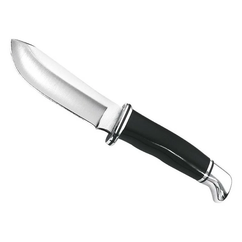 Le manche du couteau est fabriqué en résine noire, offrant une excellente prise en main et une grande résistance aux chocs et à l’usure. La mitre et la garde sont en aluminium, ajoutant une touche de sophistication au design du couteau.