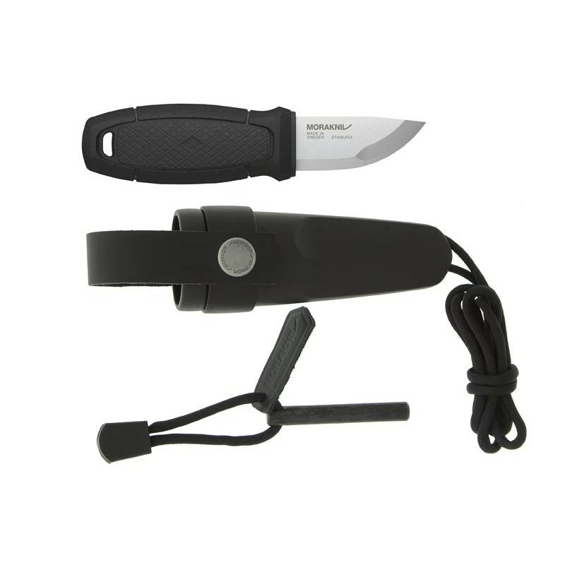 Si le poignard Mora Eldris est tant prisé des aventuriers, chasseurs et campeurs, c’est avant tout pour son gabarit compact. Ils n’auront aucune difficulté pour le transporter au quotidien, en le glissant tout simplement dans une poche ou dans le sac à dos. Ils pourront en permanence compter sur une lame tranchante de longueur 6cm en acier inoxydable 12C27. Une lame de qualité utilisable en toute sécurité ! Parfait pour les randonnées et excursions Outdoor, le poignard de poche Morakniv Eldris se dote également d’un manche noir en gomme. Un manche antidérapant qui ne conduit pas le froid, il convient pour toutes les saisons sans exception (même en hiver). Ce couteau de survie Mora Eldris noir convient aussi bien pour les aventuriers novices qu’expérimentés, un modèle qu’il est possible de manipuler en toute sécurité. Poignard Mora Eldris vendu avec son étui rigide noir avec languette de blocage. Livré avec paracord pour le port du couteau autour du cou ainsi qu’un allume-feu Fire Starter très utile pour la survie, bushcraft ou camping sauvage.