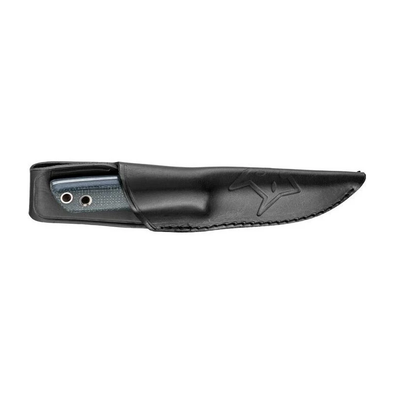 Le Perser, signé Fox Production, est un poignard conçu par le designer Reichart Markus. Ce couteau fixe porte la référence FX.143MB, il est adapté aux activités Outdoor les plus exigeantes. Son manche est fait de micarta et toile de jute, il est essentiellement de couleur bleue ce qui lui confère un certain style. Plusieurs ajours sont de la partie, on apprécie aussi sa forme à l’origine d’un grand confort de prise en main. Le Fox Perser possède une lame de 95mm de long en acier Niolox à la finition satinée, et à la dureté HRC de 59-61. Un acier inoxydable qui résiste par ce fait extrêmement bien à la corrosion. La lame est marquée par le petit motif tête de renard qui fait bien sûr allusion à la marque Fox Production. Le manche mesure 11cm de long, le poignard Perser Fox Production est livré avec un bel étui de protection en cuir noir de qualité. Ainsi vous pourrez le transporter aisément sans jamais l’abîmer !