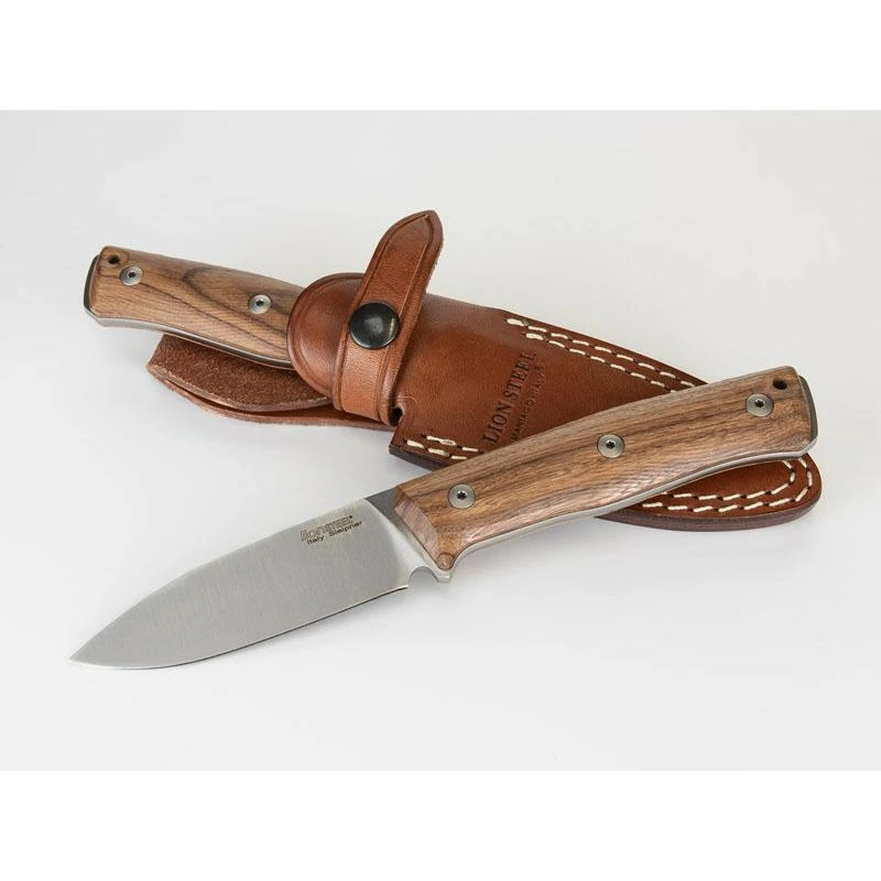 Particulièrement adapté pour les activités Outdoor telles que la randonnée en montagne ou encore pour la vie de camp, le poignard LionSteel B35.ST est une création de Pensato Michele (Molletta). Un couteau fixe que l’on distingue aisément pour son manche fabriqué en plaquettes de bois de santos à l’ergonomie très étudiée. Il est en effet possible de le tenir dans les deux sens (pouce vers la lame ou vers l’extrémité du manche). La poignée en bois de santos est ajourée d’un petit trou en bout faisant office de passe-lacet ou trou pour lanière si vous préférez. Cela rend le poignard LionSteel B35 très transportable au quotidien !
