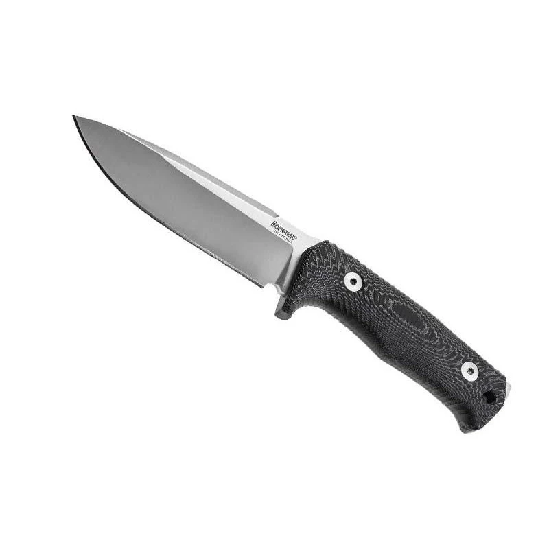 Conçu par le designer Michele Pensato aka “Molletta“, ce poignard LionSteel T5 est muni d’un manche très ergonomique conçu en micarta gris/noir. Un manche qui est fabriqué à partir de la technologie SOLID (manche monobloc taillé en centre d’usinage à partir d’une seule pièce de matière). Pour information le manche gris/noir en micarta mesure environ 12,5cm de longueur. La lame de ce poignard LionSteel T5.MI est conçue en acier Niolox satiné, elle mesure 13cm de longueur et peut être personnalisée par gravure. À noter qu’elle est discrètement décorée par le logo LionSteel au niveau de la face avant. Ce couteau à lame fixe LionSteel T5 micarta gris/noir mesure donc au total plus de 25cm de longueur. Un grand poignard de haute qualité qui fera le bonheur des chasseurs, passionnés de bushcraft ou autres activités Outdoor. Livré avec son étui en cuir noir à double coutures.