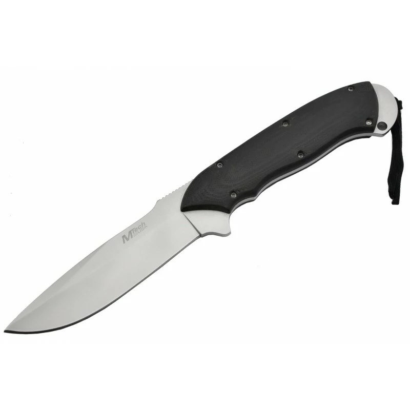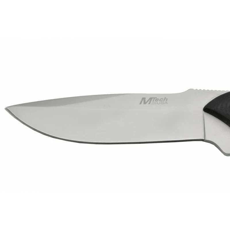 Par sa construction, le couteau fixe dit poignard est plus robuste, plus puissant qu’un modèle pliant. Le Mtech USA MT-024 est justement un couteau fixe possédant une lame de forme drop point, fabriquée en acier inoxydable 440 à la finition mat non réfléchissante. De longueur 105mm, la lame est marquée par le logo de la marque, elle comprend un jimping pour améliorer le contrôle. N’oubliez pas qu’il est possible de graver la lame en supplément.
