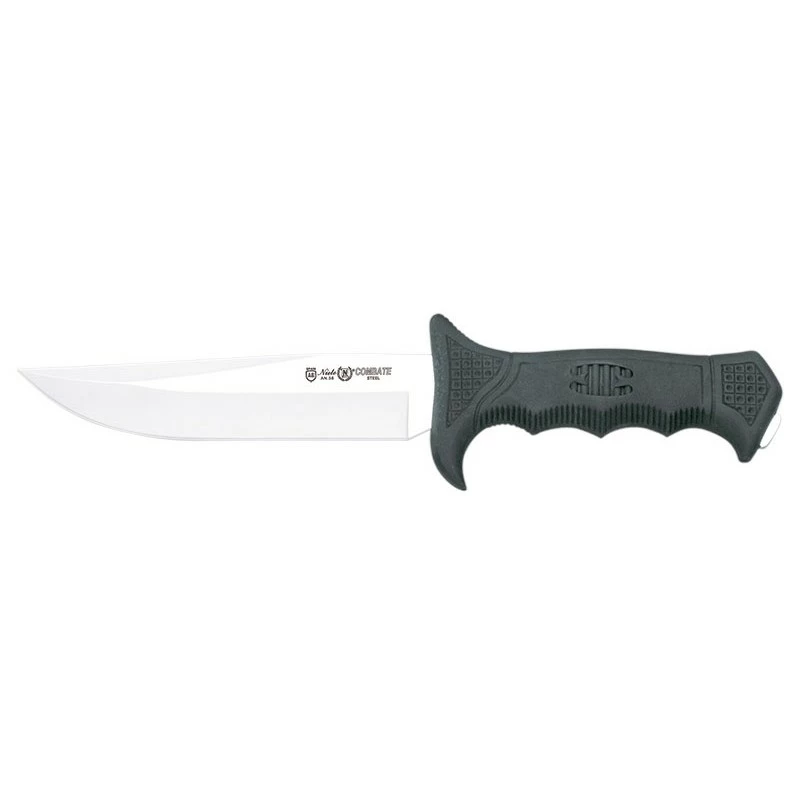 Affrontez le monde extérieur avec plus de sérénité grâce au Nieto Combate NI184, un poignard alliant résistance et qualité de coupe. Sa lame de forme drop point mesure 15cm de longueur, et s’avère être fabriquée en acier inoxydable AN-58 que la marque espagnole Nieto affectionne tout particulièrement. Personnalisable par la gravure de l’inscription de votre choix, elle vous sera d’une grande utilité lors des aventures ! À noter que cette dernière est également marquée par le logo Nieto ainsi que le nom du modèle du couteau, ici Combate.